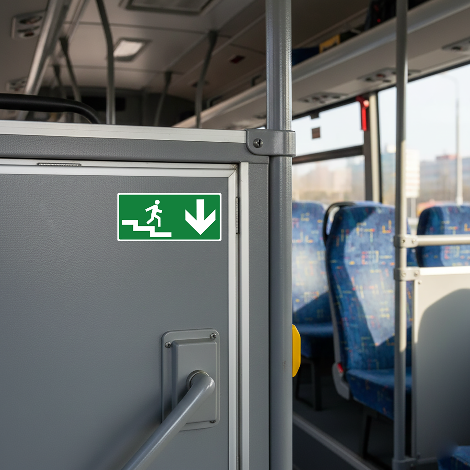 Notfall- und Brandschutzaufkleber für Treppen, die nach rechts abwärts führen