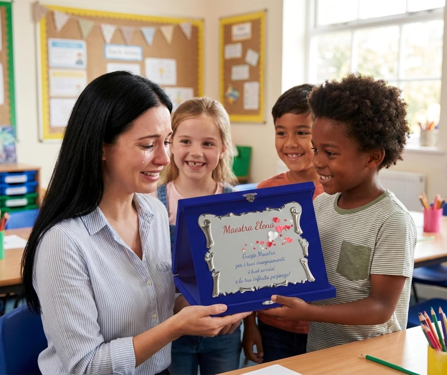 Celebra i momenti più importanti con eleganza. La nostra targa personalizzata argentata con cofanetto in velluto blu è il regalo ideale per rendere indimenticabili premiazioni, pensionamenti, lauree e anniversari.
