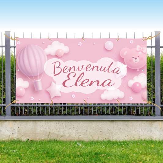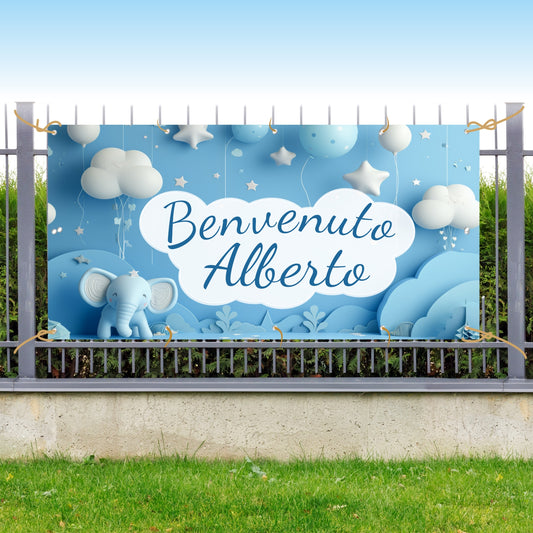 Pubblimania Striscione Nascita maschietto bimbo Personalizzato. Banner in PVC per esterno con occhielli