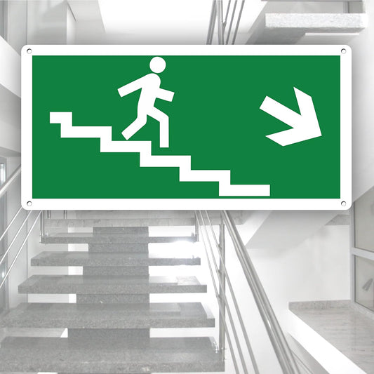 Pubblimania USCITA DI EMERGENZA SCALE A DESTRA | Cartello in alluminio composito metallo 3 mm di spessore (Cm 29x14,5)
