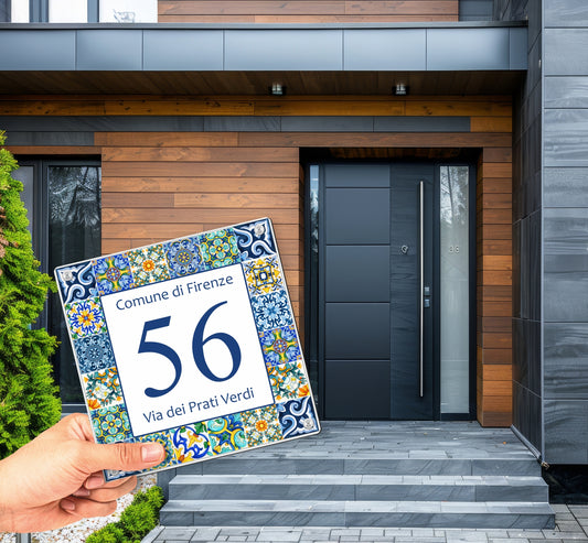 Pubblimania NUMERO CIVICO, Stile Maioliche Siciliane Stampa su alluminio rinforzato