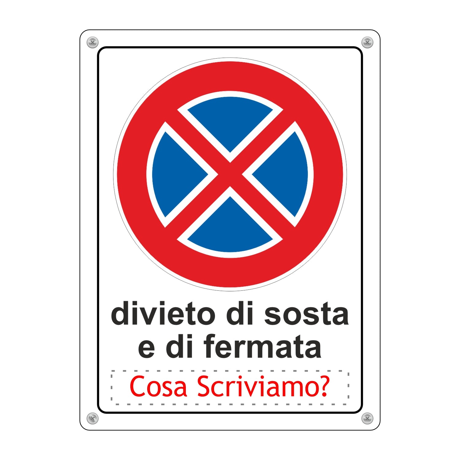 Cartello Divieto di Sosta e di fermata con personalizzazione in alluminio composito di alta qualità, progettato per resistere agli agenti atmosferici e garantire massima visibilità.