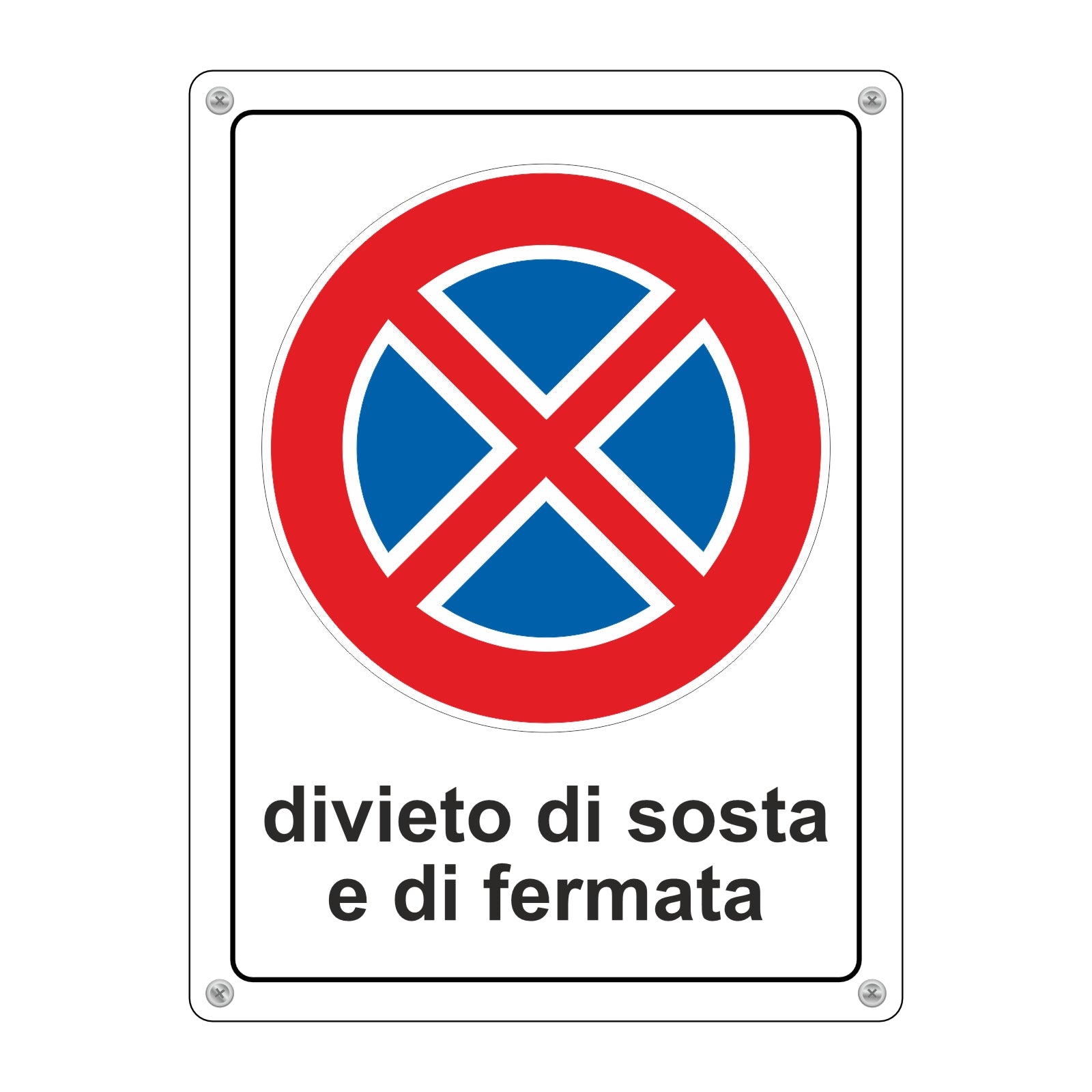 Cartello Divieto di Sosta e di fermata in alluminio composito di alta qualità, progettato per resistere agli agenti atmosferici e garantire massima visibilità.