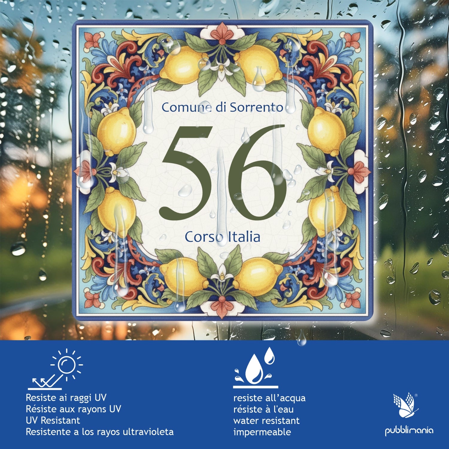 Cartello Numero Civico LIMONI stile retrò personalizzato con le scritte che scegli tu.